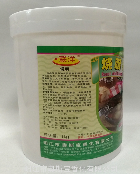 参考使用方法:1、烧腊制品:将烧腊香味素和各种基本配料混合均匀,腌制约20-40分钟放入烤炉烤熟即可。2、卤制品:将烧腊香味素在熟前约5-7分钟放进卤制品中。3、炆、焗制品:在制品熟前约5-7分钟将本产品和其它配料放入肉制品中至完全吸收熟香为好